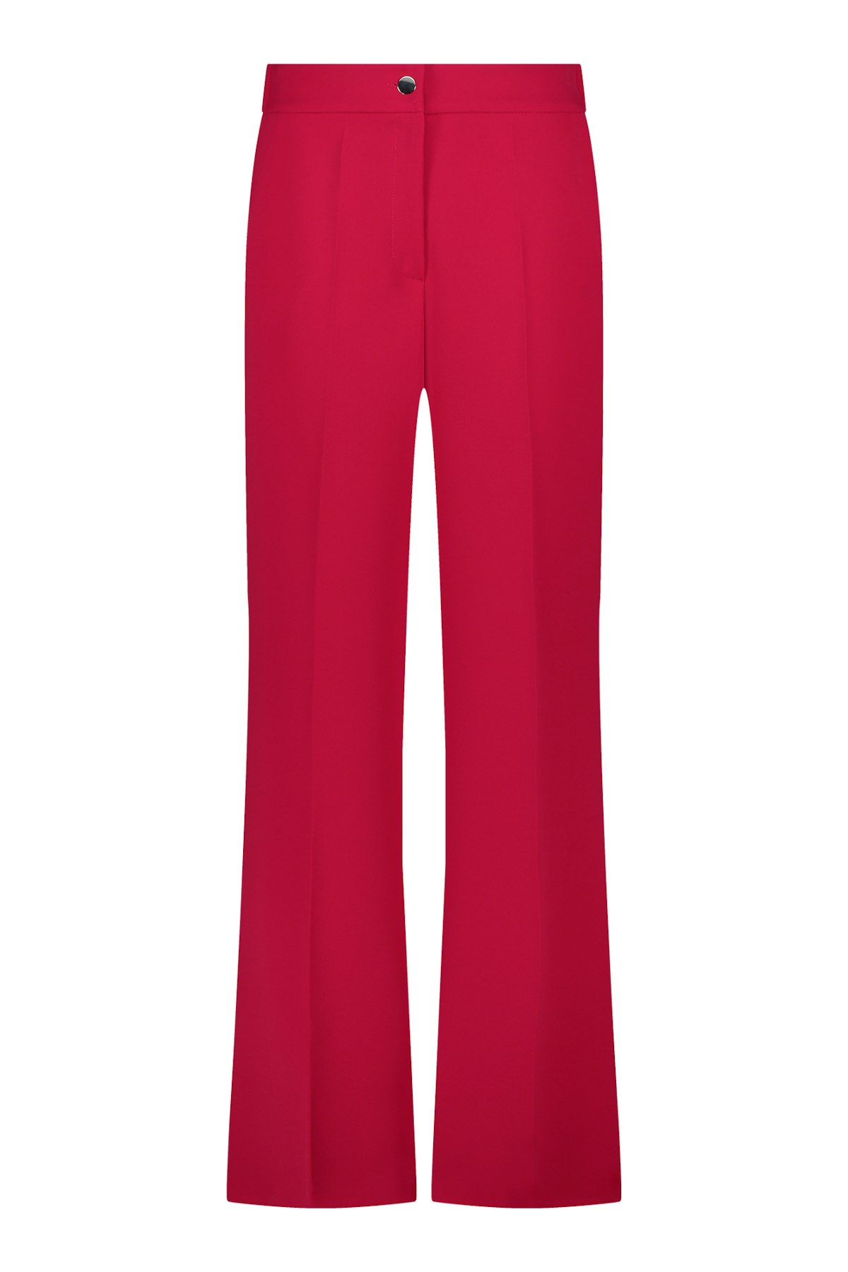 Pantalon van Label Dot met wijde pijpen, knoop- en ritssluiting, steekzakken en elastiek aan de achterzijde van de tailleband.