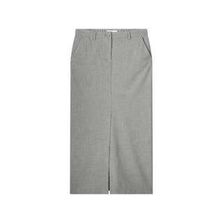Lange pencil rok van Summum met ene hoge split middenvoor, twee steekzakken, twee klepzakken en een knoop- en ritssluiting.