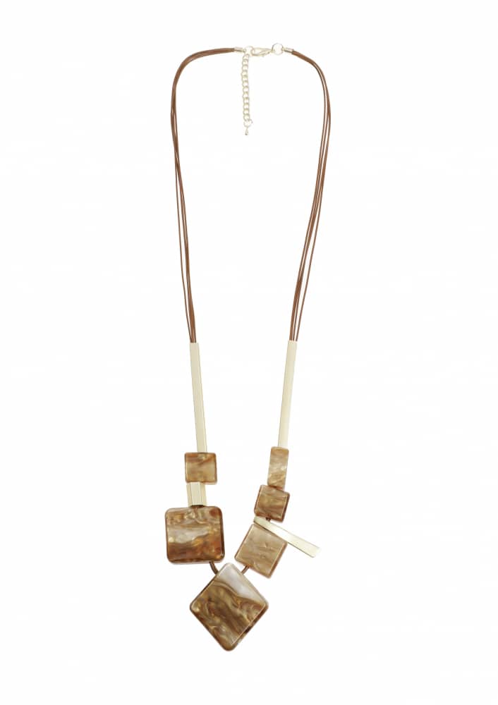 Lange ketting van Caroline Biss voorzien van vierkante blokjes.