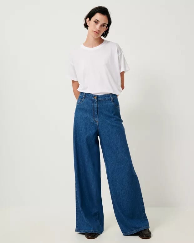 5-pocket high waist jeans van Sessun met wijde pijpen en een knoop- en ritssluiting. Materiaal: Lyocell 77%| katoen 23%