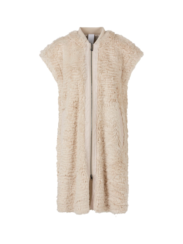 Lange, fluffy bodywarmer van Marc Cain Sports met een ritssluiting, kleine opstaande kraag en steekzakken. Materiaal: Acryl 85%| polyester 15%