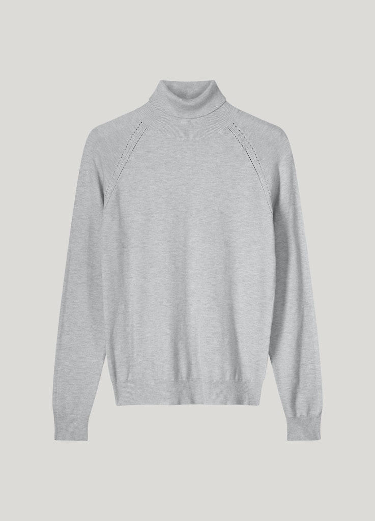 Gemêleerde coltrui van Summum met lange raglanmouwen, opengewerkte details en ribgebreide boorden. Materiaal: Viscose 80% polyamide 20%