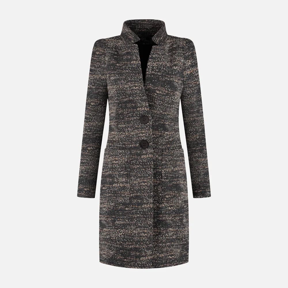 Lange blazer van ML Collections in structuurstof met lange mouwen, knoopsluiting en opgestikte zakken.