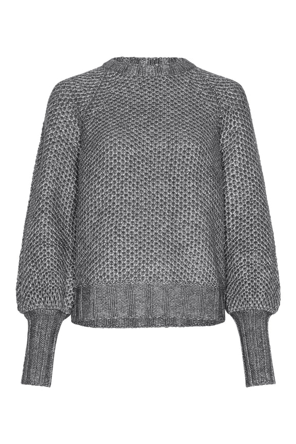 Wollen trui van HET! Amsterdam met lurex erin verwerkt, lange mouwen, brede manchetten en een ronde hals. Materiaal: Wol 100%
