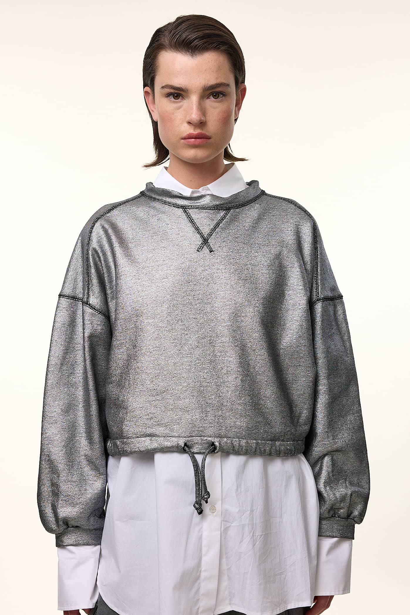 Metallic sweater van Femmes du Sud met lange mouwen, verlaagde schoudernaden, ronde hals en een trekkoord in de zoom.
