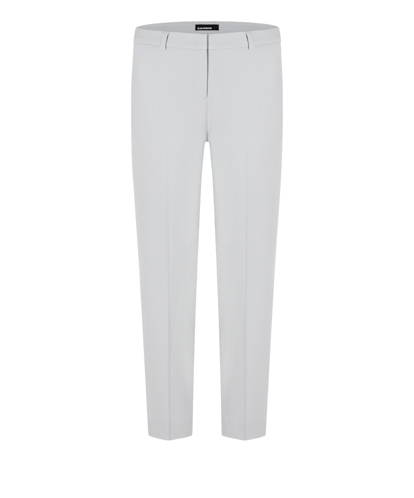 Enkellange broek van Cambio met een verborgen knoop- en ritssluiting, steekzakken en twee paspelzakken aan de achterzijde.
