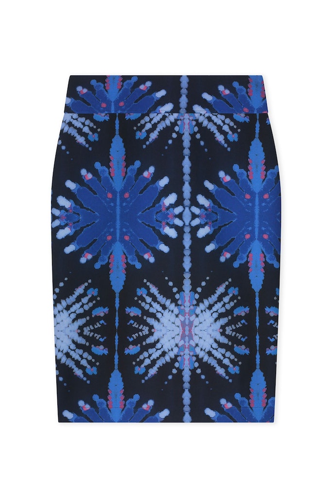 Rechte rok van Kyra in een all-over dessin met een elastische tailleband. Materiaal: Polytheen 90%| elastan 10%