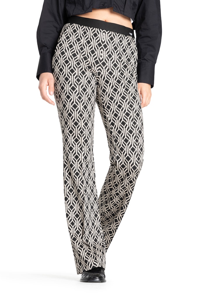 Flared broek van Cambio in een all-over dessin met twee steekzakken en een elastische tailleband.