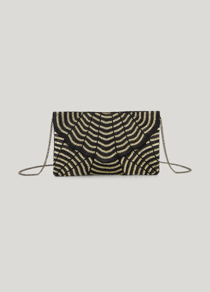 Clutch van Summum met tweekleurige kralen en schelpvormige klep. Materiaal: Polyester 55%| katoen 30%| metallic 15%