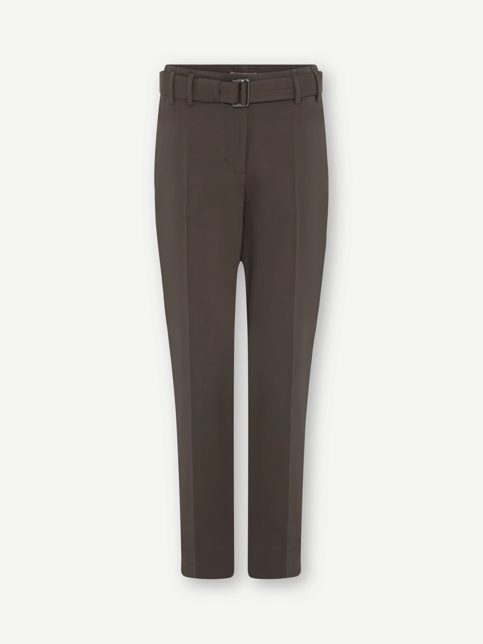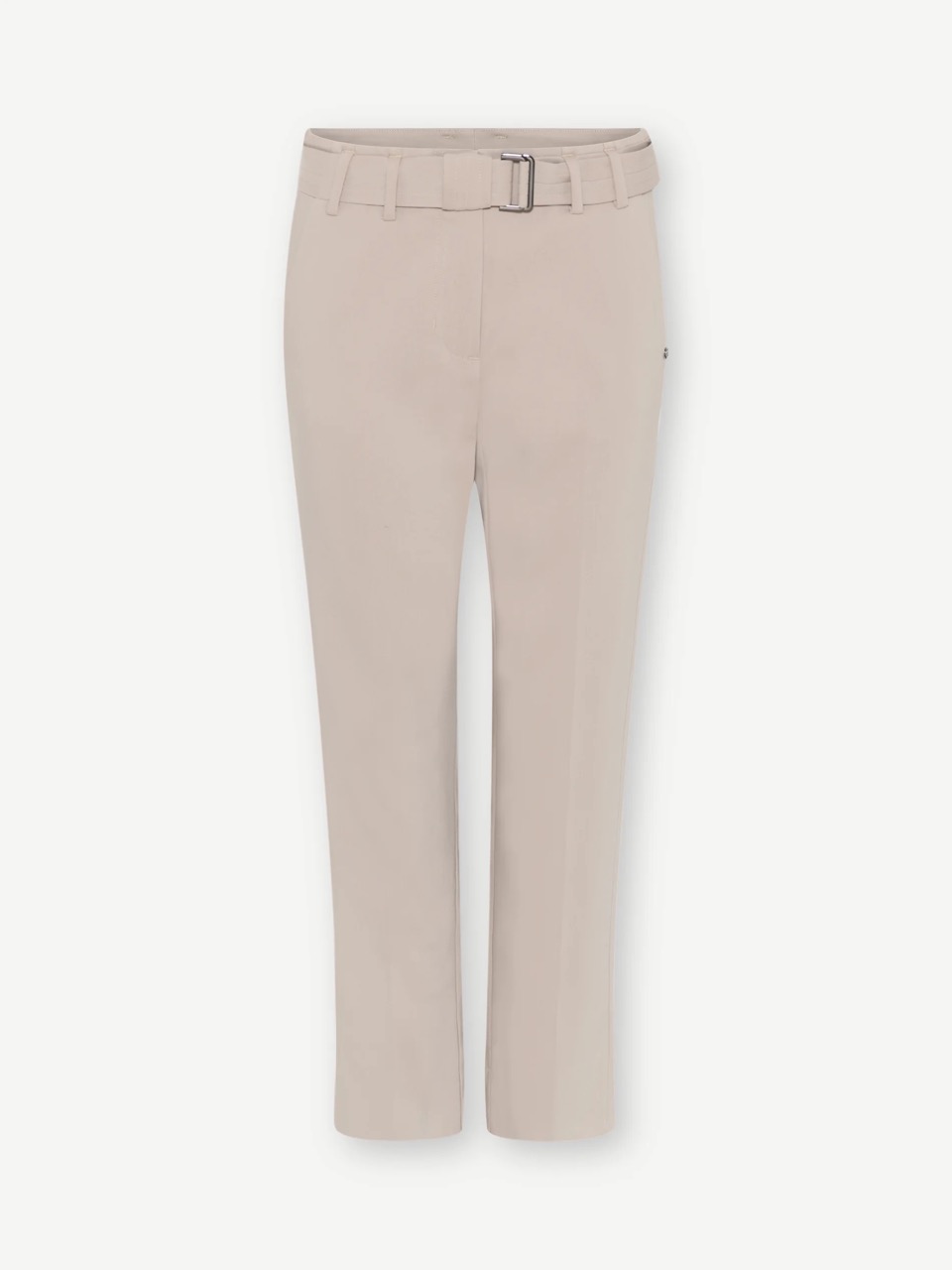 Enkellange broek van Gustav met twee steekzakken, twee paspelzakken aan de achterzijde, verborgen knoop- en ritssluiting, kleine splitten in de pijp en een ceintuur.