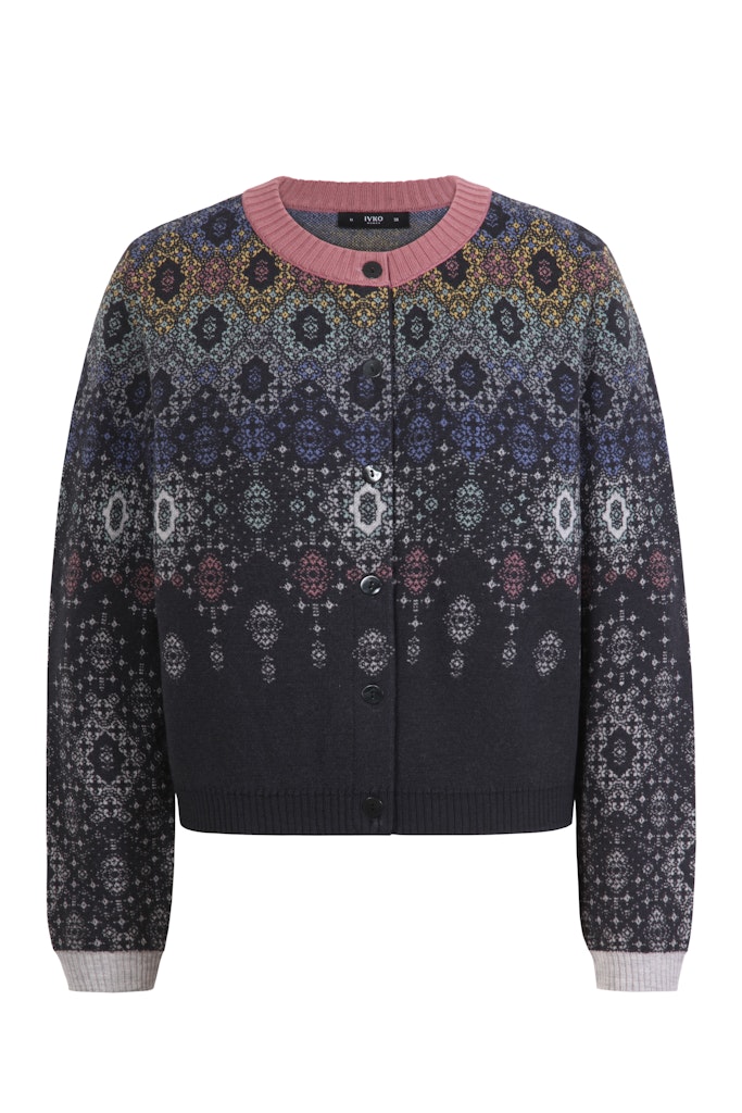 Jacquard gebreid vest van Ivko Woman met lange mouwen, knoopsluiting en ronde hals. Materiaal: Wol 100%