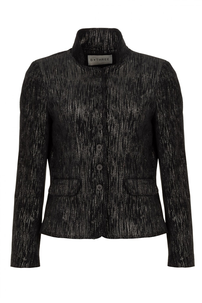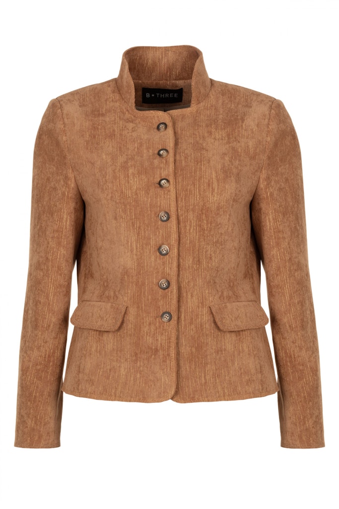 Blazer van B Three met lange mouwen, opstaande kraag, knoopsluiting en klepzakken. Materiaal: Polyester 90%| polyamide 7%| elastan 3%