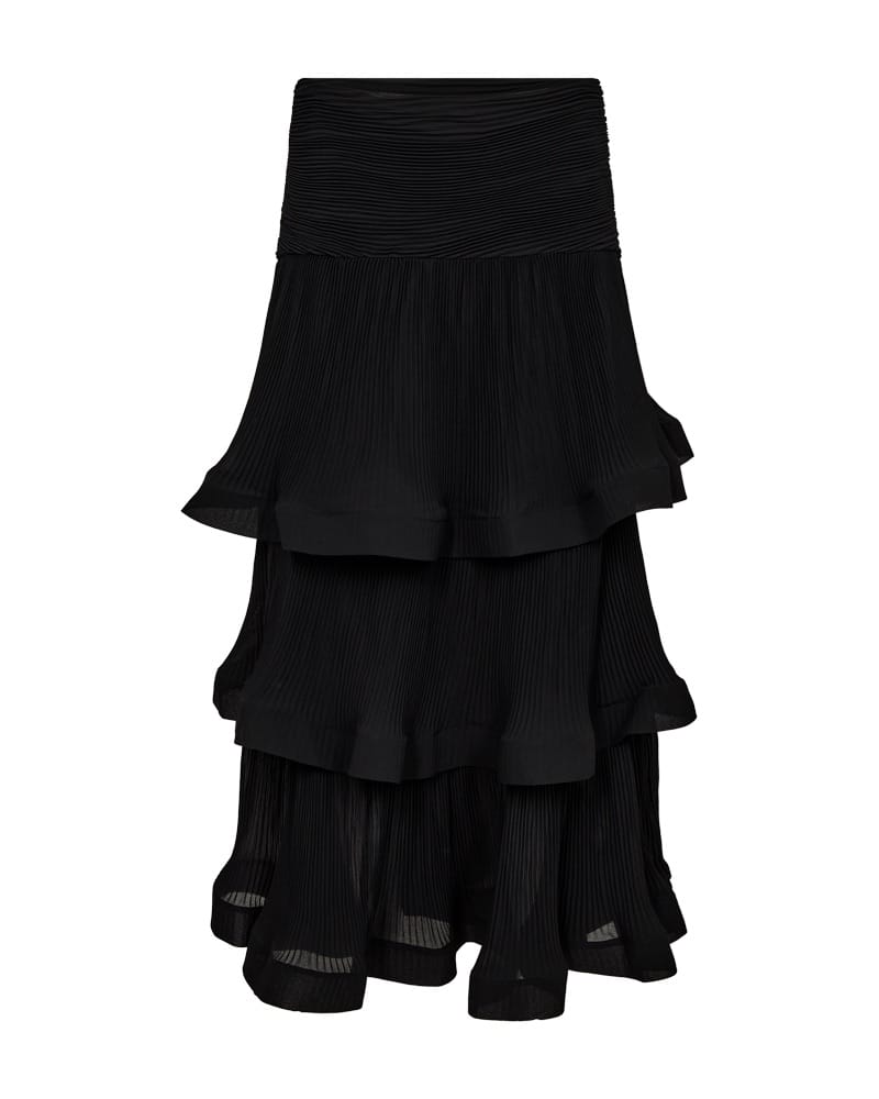 Rok van Copenhage Muse in een geplooid materiaal voorzien van diverse lagen met een ritssluiting aan zijkant en een brede elastische tailleband.