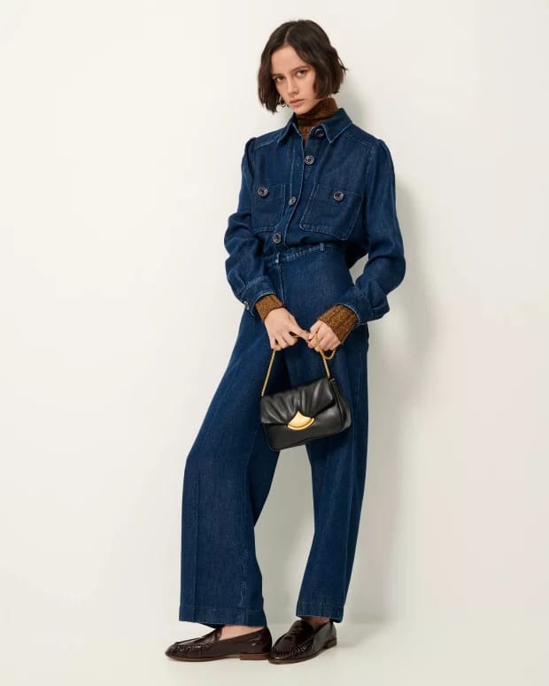 Broek van Sessun met rechte pijpen, verborgen knoop- en ritssluiting en een hoge taille. Materiaal: Lyocell 100%