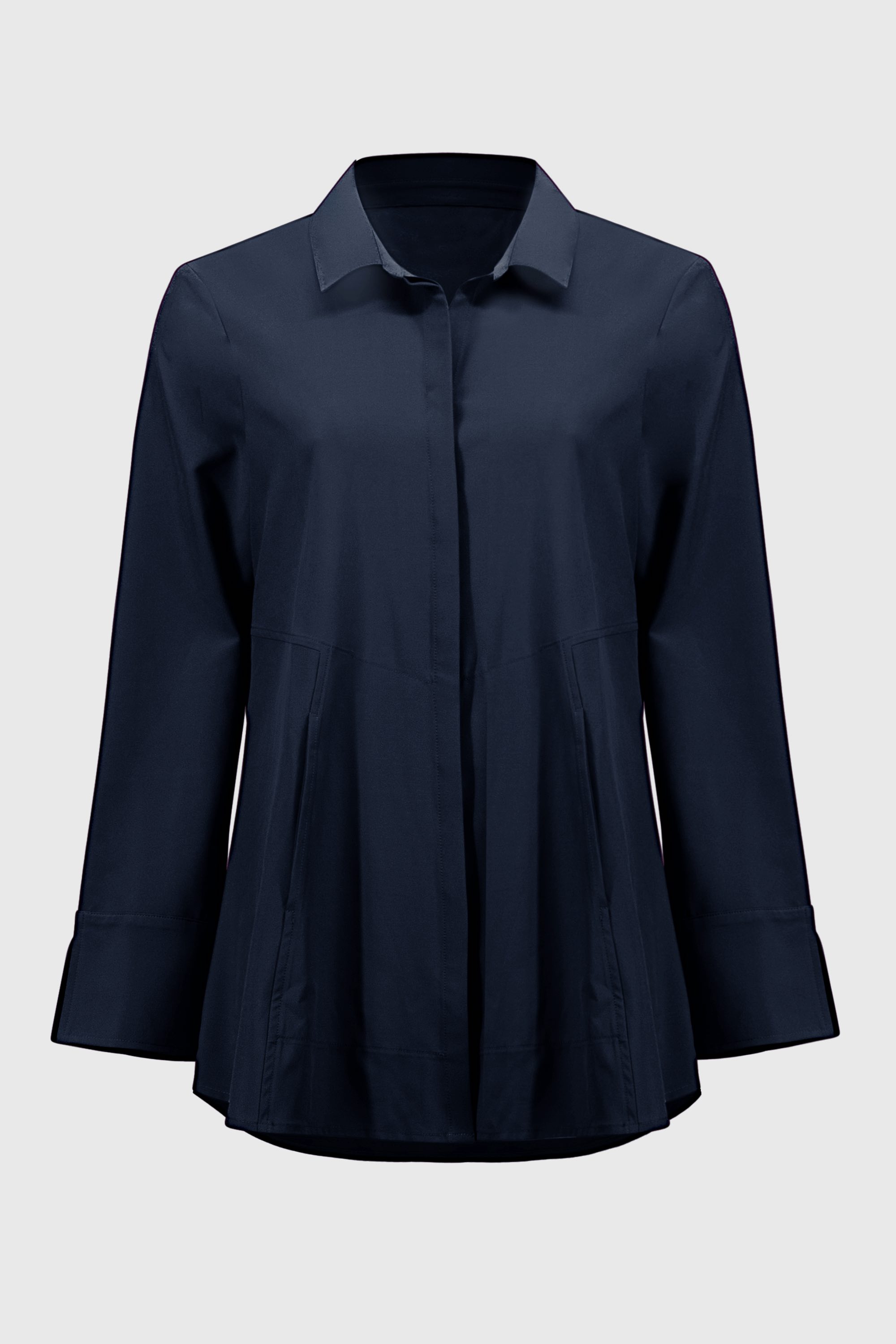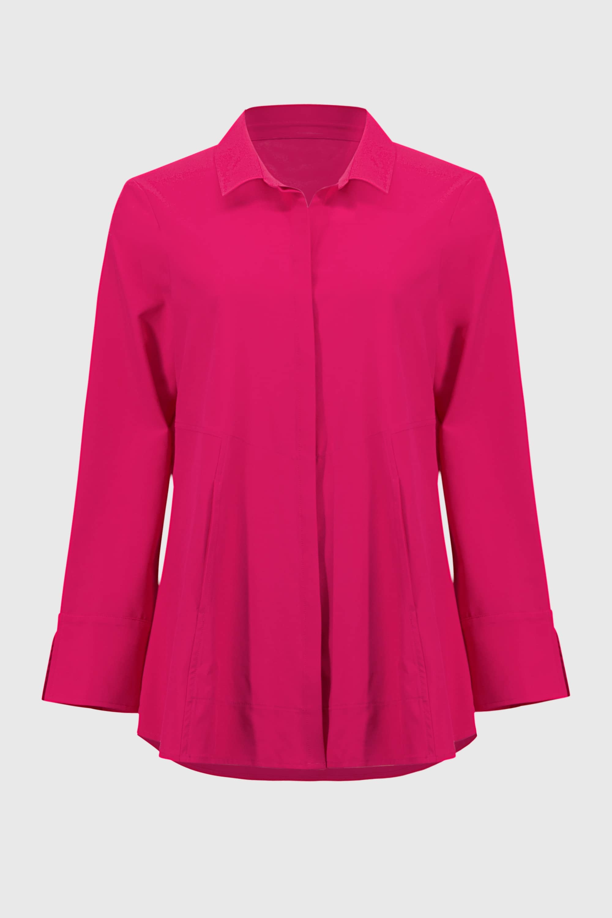 A-lijn blouse van Joseph Ribkoff met een verborgen knoopsluiting, kraag, steekzakken, lange mouwen en manchetten voorzien van een split.