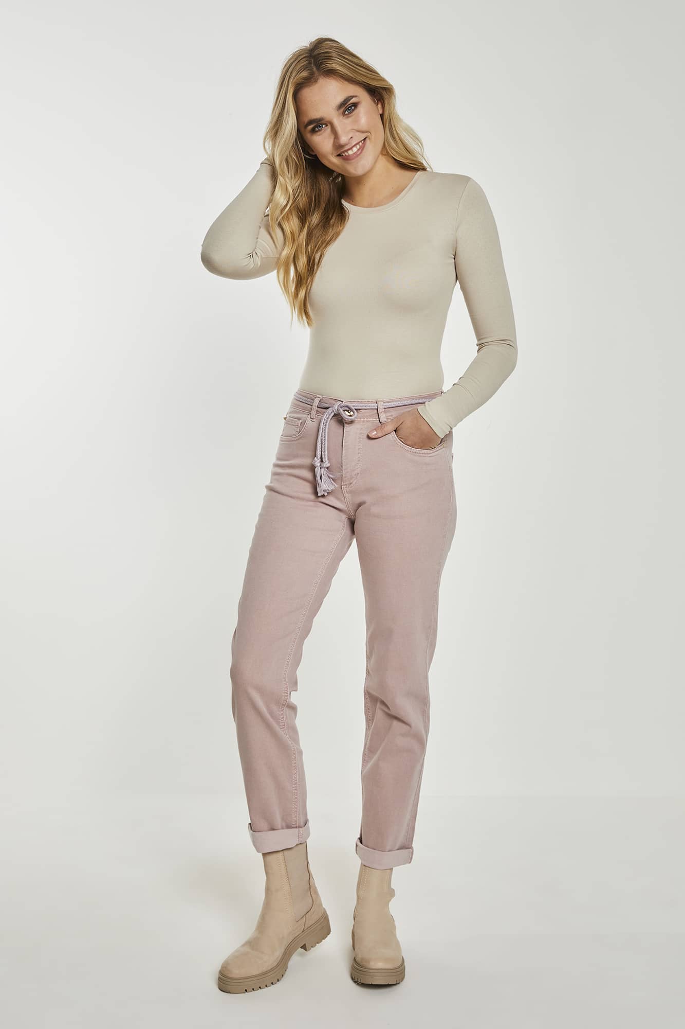 5-pocket ribcord broek van Para Mi met een knoop- en ritssluiting, hoge taille en een strikkoord in de taille. Materiaal: Katoen 98%| elastan 2%