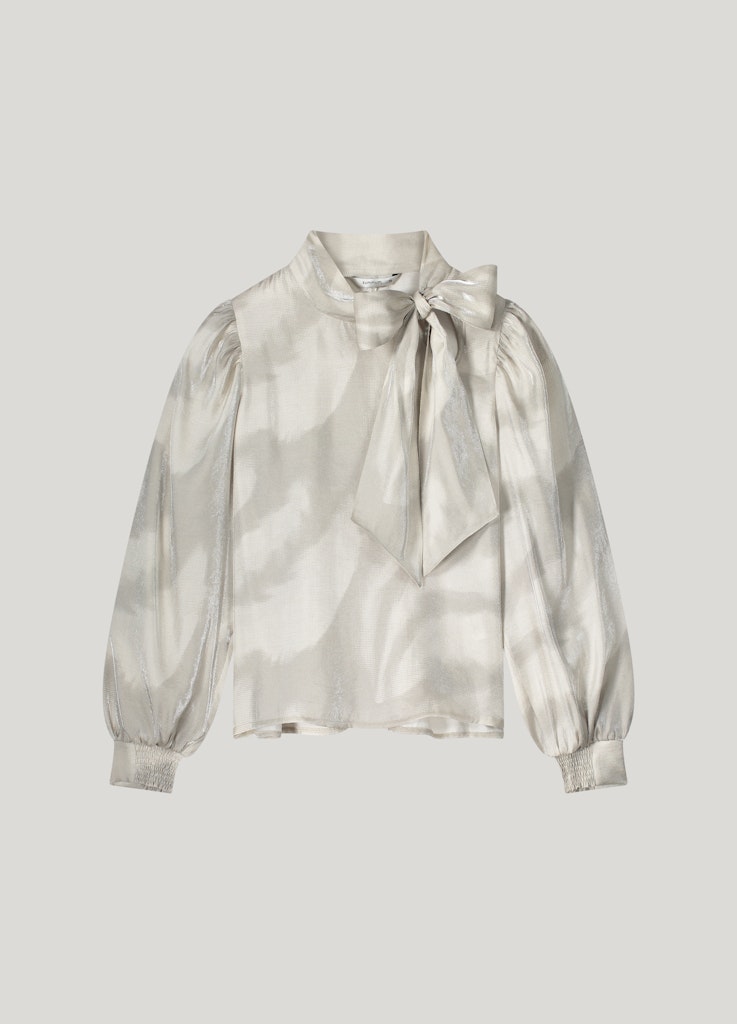 Blouse van Summum in een glanzende print met een opstaande kraag voorzien van strik en lange pofmouwen voorzien van gedeeltelijk gesmokte manchetten. Materiaal: Viscose 81%| polyamide 19%