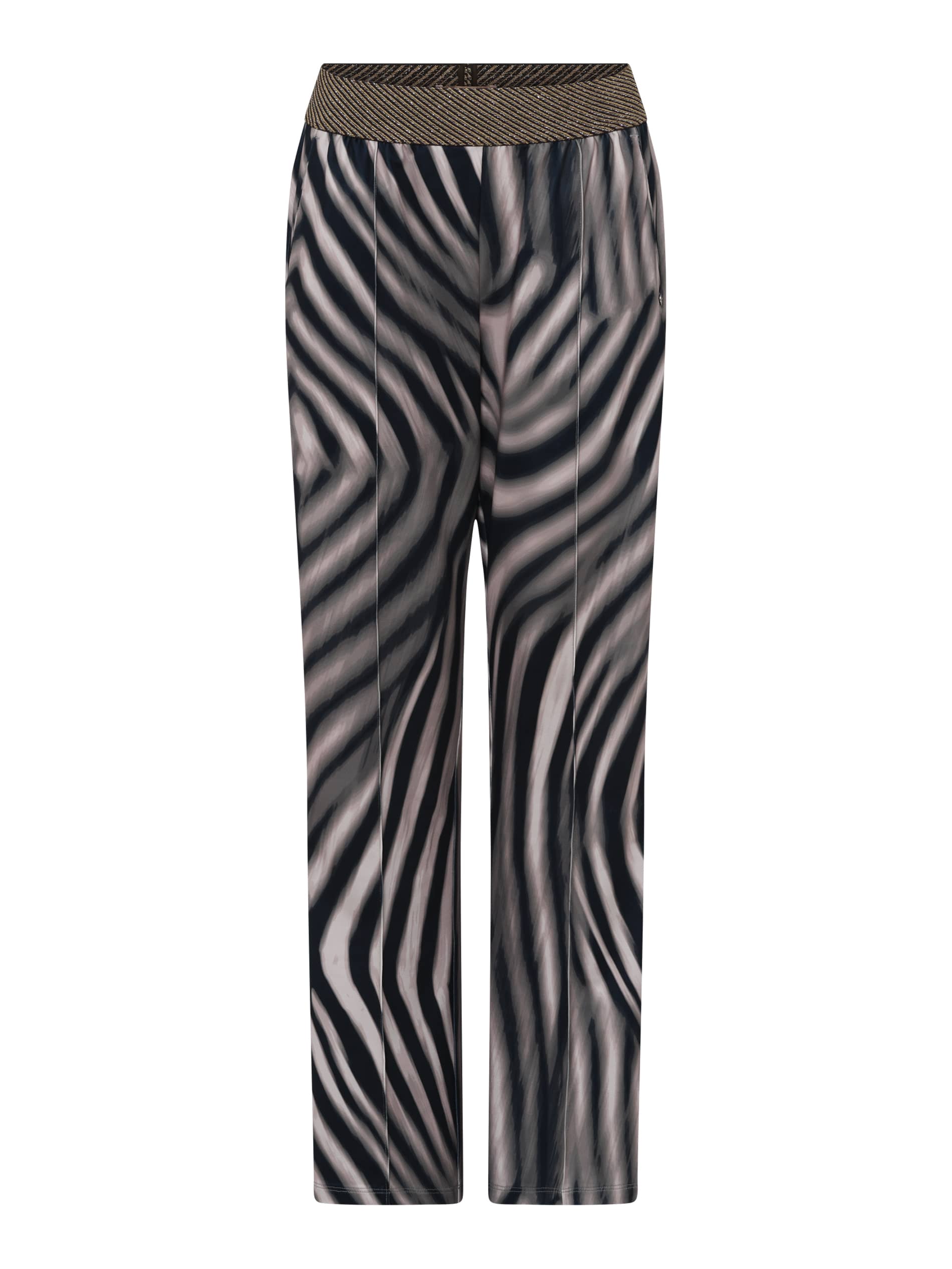 Jersey broek van Gustav in een zebra dessin met rechte pijpen en een elastische tailleband. Materiaal: Polyester 85%| elastan 15%