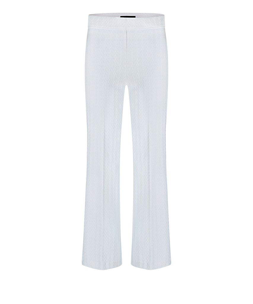 Flared broek van Cambio in een structuur dessin met een elastische tailleband. Materiaal: Katoen 55%| polyamide 43%| elastan 2%