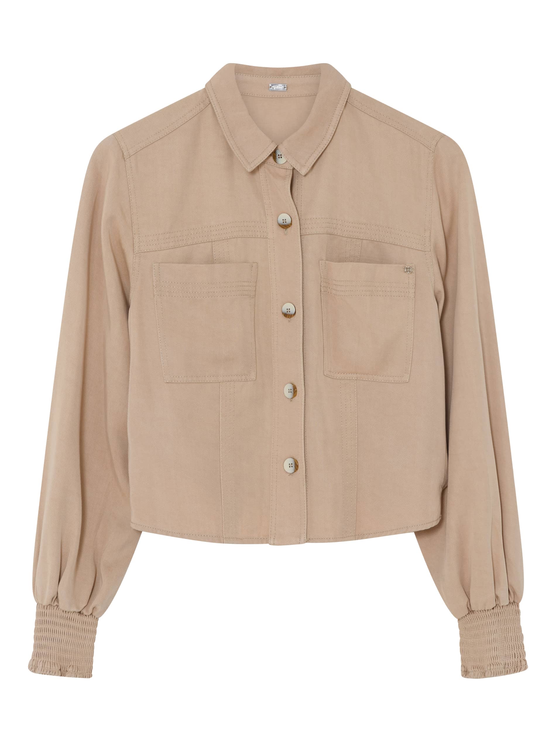Jacket van Gustav met lange mouwen voorzien van gesmokte manchetten, kraag, knoopsluiting en een twee opgestikte borstzakken.