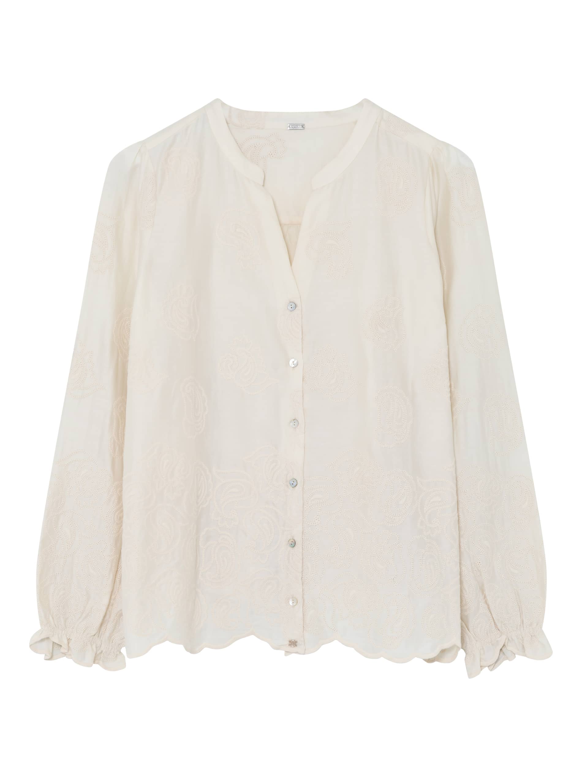 Blouse van Gustav in een structuur dessin met lange pofmouwen, opstaande kraag, V-hals en een knoopsluiting. Materiaal: Katoen 100%