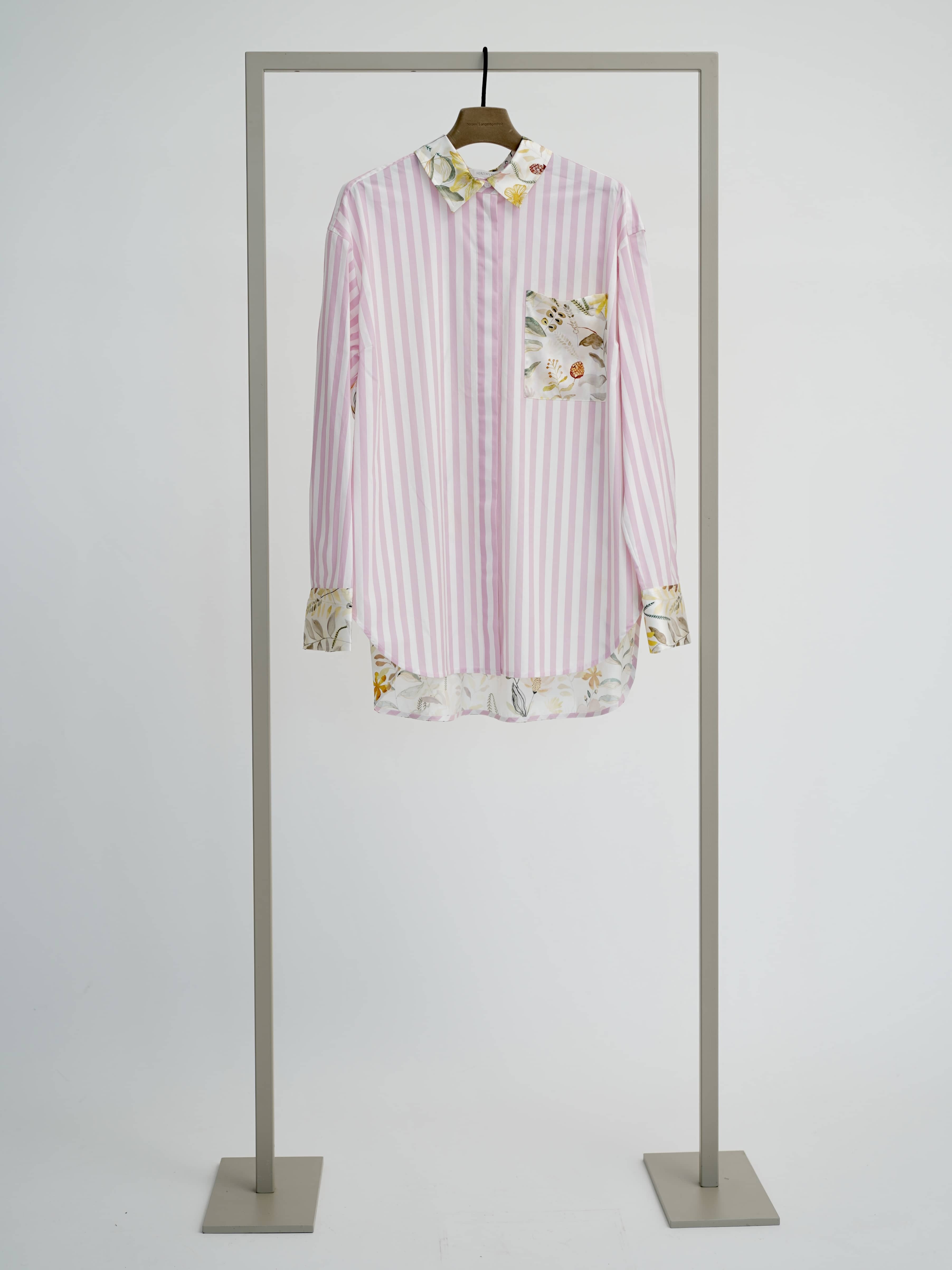 Blouse van Herzen's Angelegenheit in streep- en bloemendessin met lange mouwen, kraag en knoopsluiting.