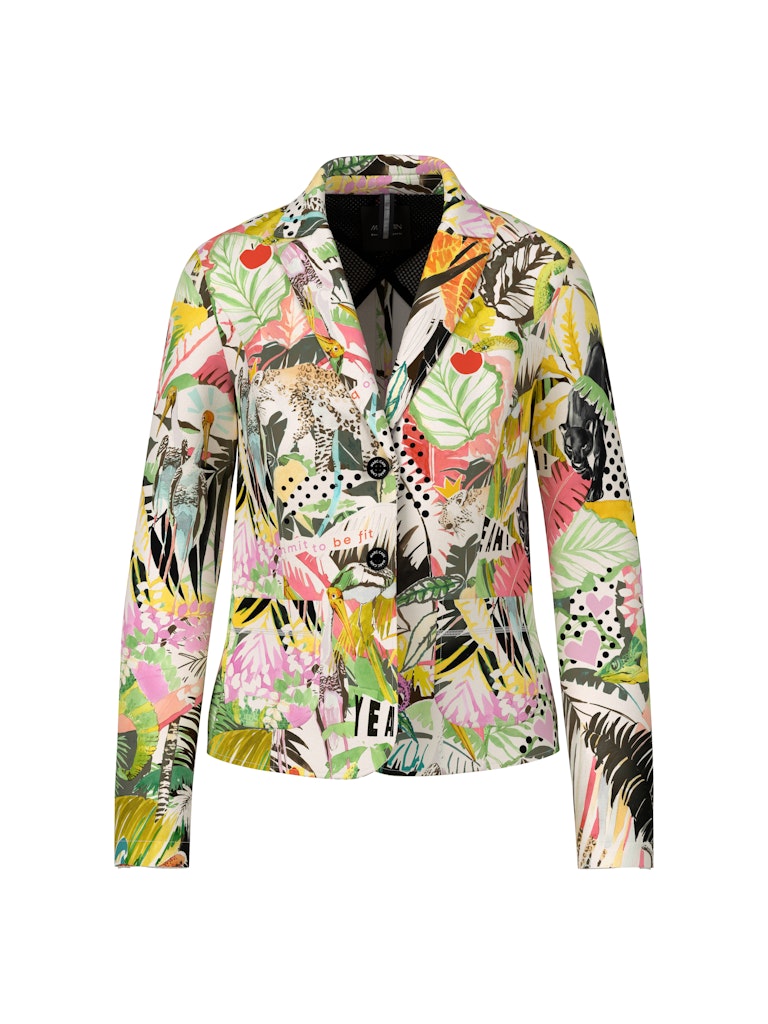 Getailleerde blazer van Marc Cain Sports in een all-over dessin met lange mouwen, reverskraag, knoopsluiting en twee opgestikte zakken.