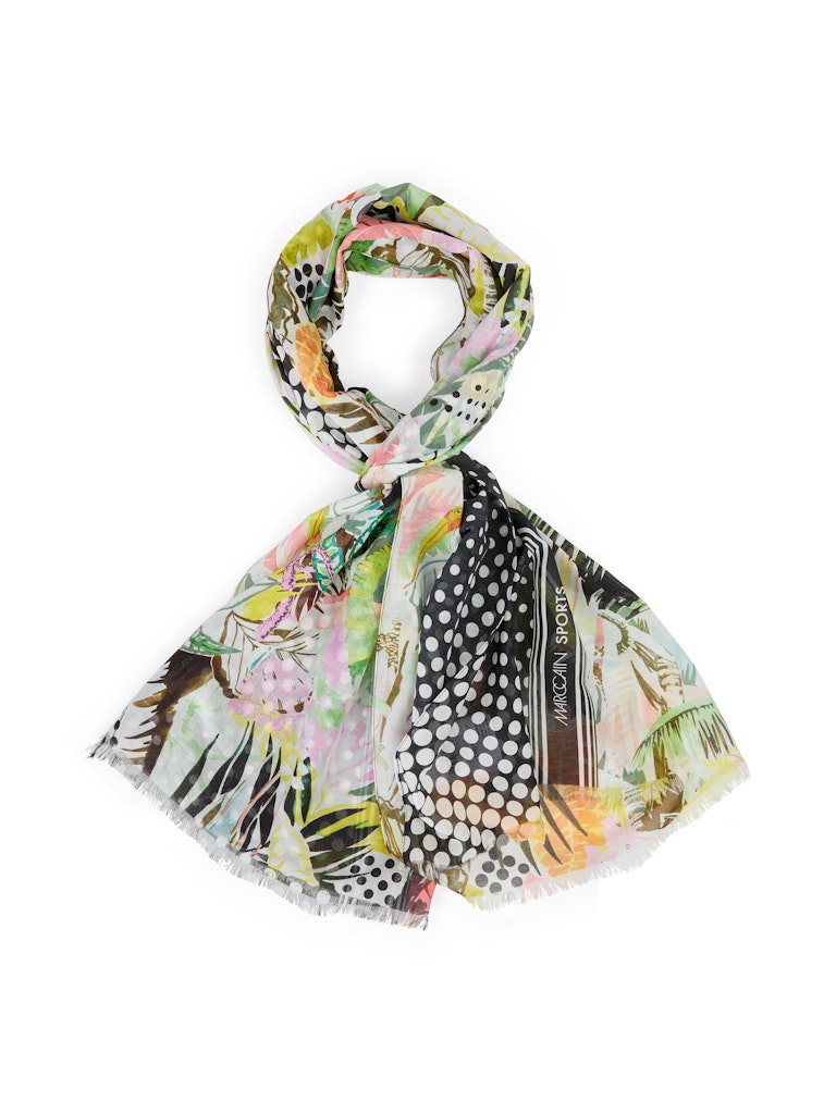 Luchtige sjaal van Marc Cain Sports in een all-over dessin met gerafelde uiteinden. Afmetingen: 200 x 70 cm.