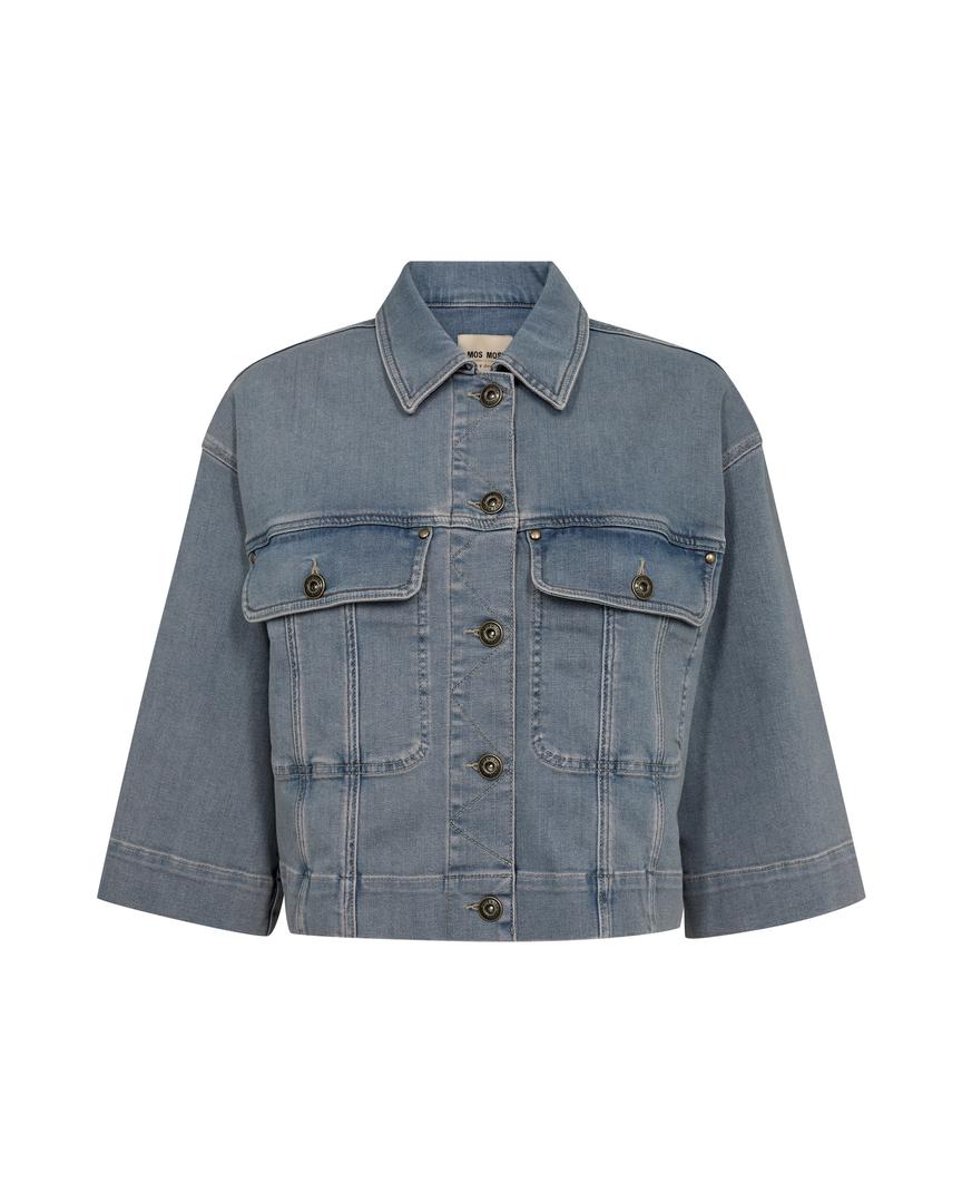 Oversized denim jacket van Mos Mosh met driekwart wijde mouwen, kraag, knoopsluiting en twee klepzakken op de borst.