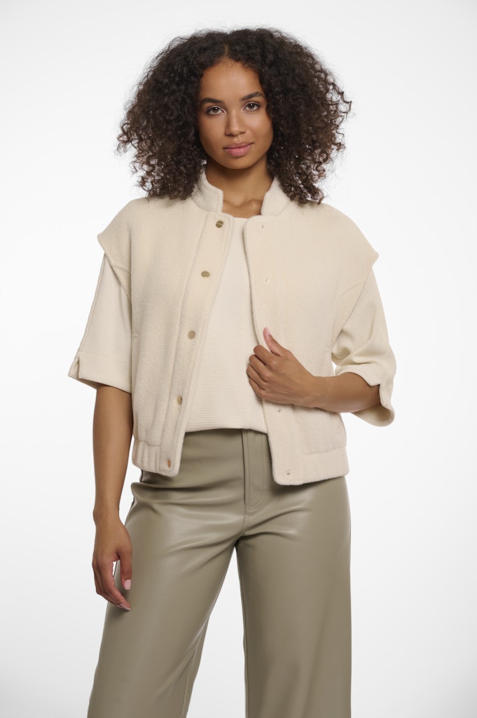 Mouwloos, zacht jacket van Rino & Pelle met een opstaande kraag, drukknoopsluiting en een elastische zoom.