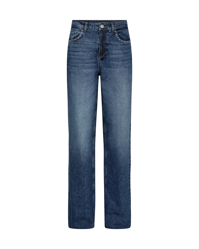 5-pocket jeans van Mos Mosh met rechte pijpen, knoop- en ritssluiting, hoge taille en strass-steentjes aan de voorzakken.