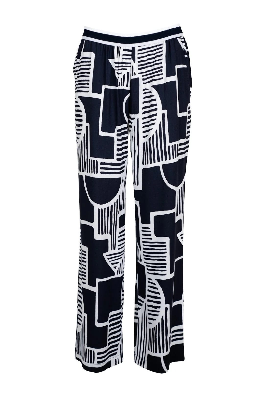 Broek van Faber in een grafisch dessin met twee steekzakken en een elastische tailleband. Materiaal: Viscose 100%