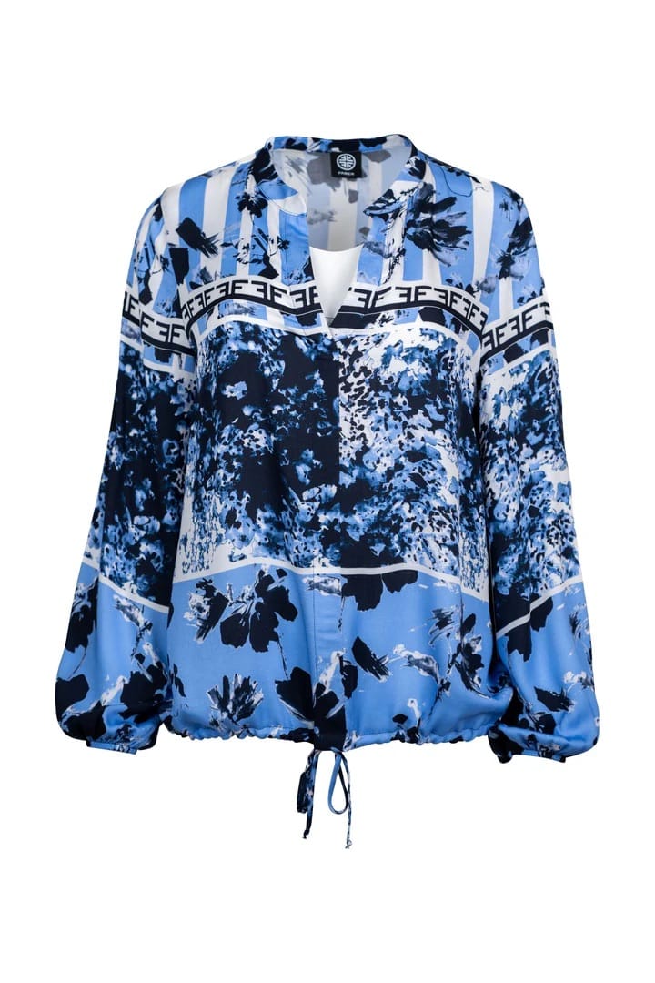 Blouse van Faber in een all-over dessin met lange pofmouwen, V-hals en een trekkoord in de zoom. Materiaal: Viscose 100%