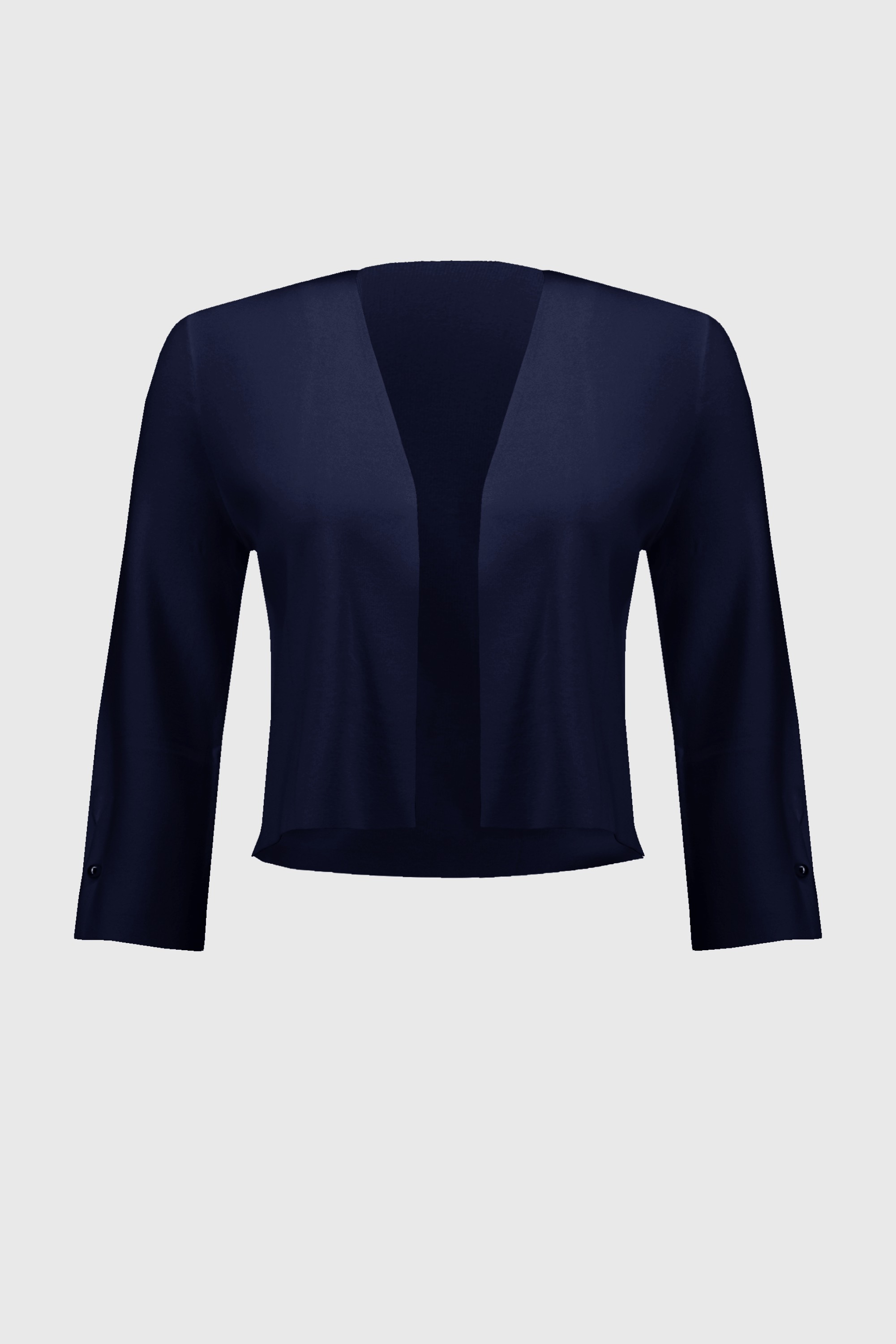 Kort openvallend vest van Joseph Ribkoff met driekwart mouwen voorzien van parelversieringen aan de manchetten.