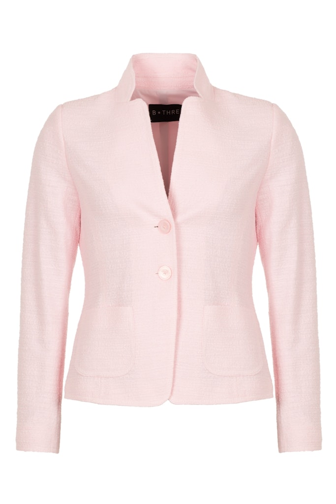 Blazer van B Three met lange mouwen, opstaande reverskraag, knoopsluiting en twee opgestikte zakken. Materiaal: Katoen 52%| polyester 48%
