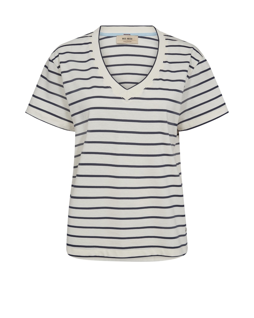 Gestreept T-shirt van Mos Mosh met korte mouwen en een V-hals. Materiaal: Katoen 100%