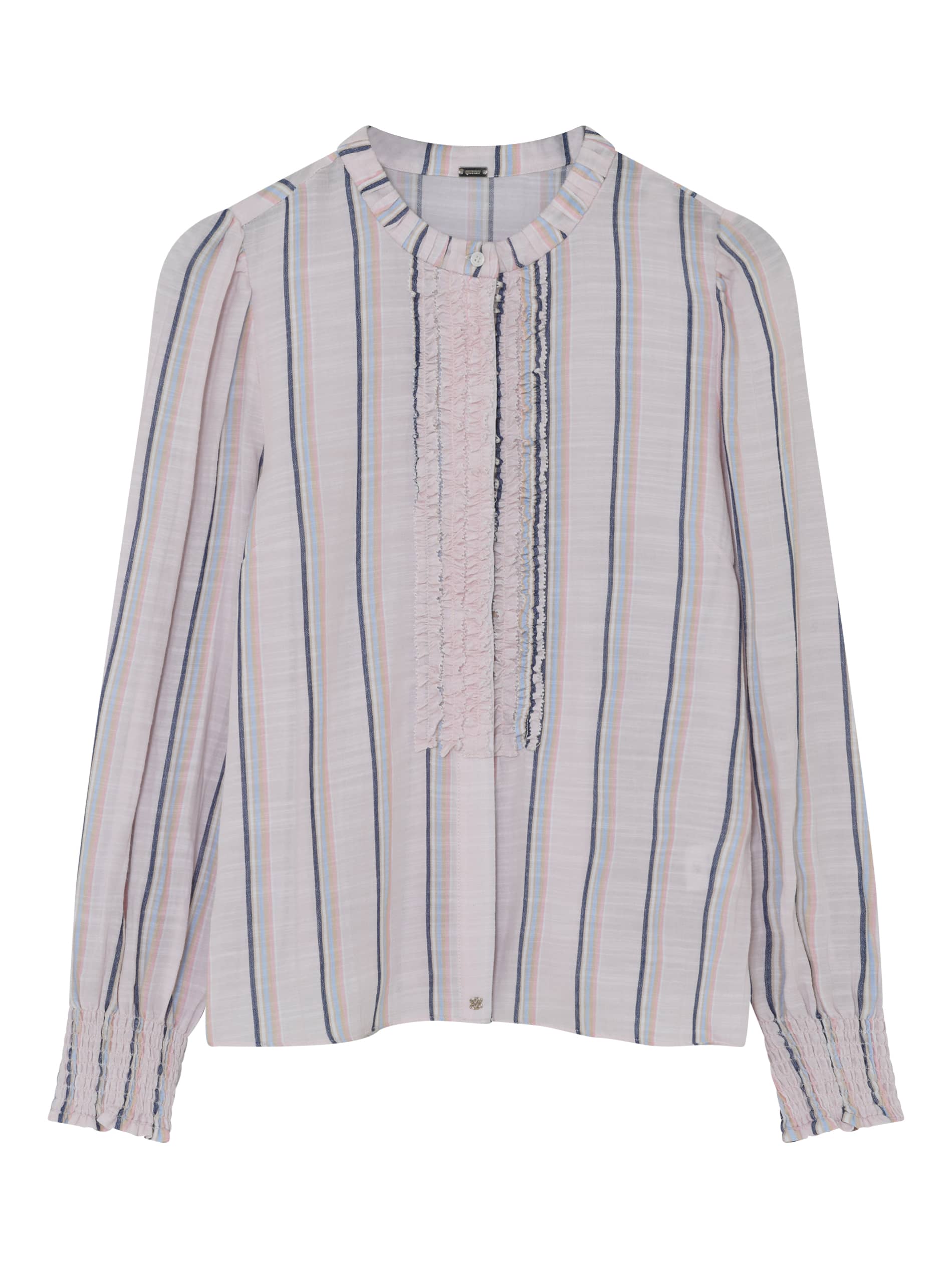 Gestreepte blouse van Gustav met lange mouwen voorzien van gesmokte manchetten, opstaande kraag en een knoopsluiting voorzien van ruche details.