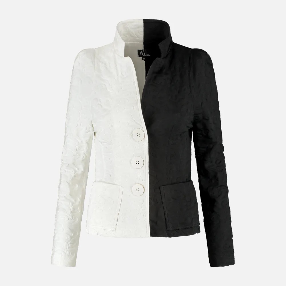 Blazer van ML Collections in een structuur dessin met lange mouwen, knoopsluiting, opstaande kraag en opgestikte zakken.