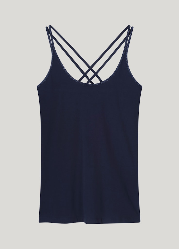 Tanktop van Summum met dunne gekruiste bandjes aan de achterzijde. Materiaal: Katoen 95%| elastan 5%