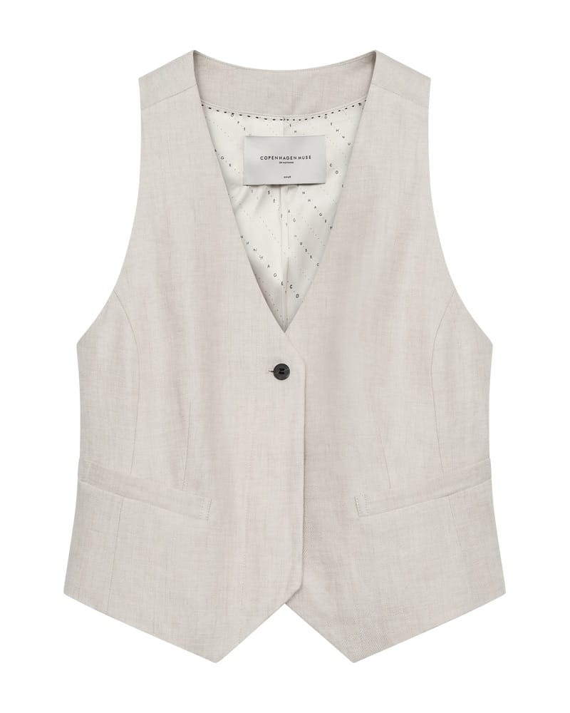 Gilet van Copenhagen Muse met een V-hals, knoopsluiting, twee paspelzakken en een verstelbaar bandje aan de achterzijde.