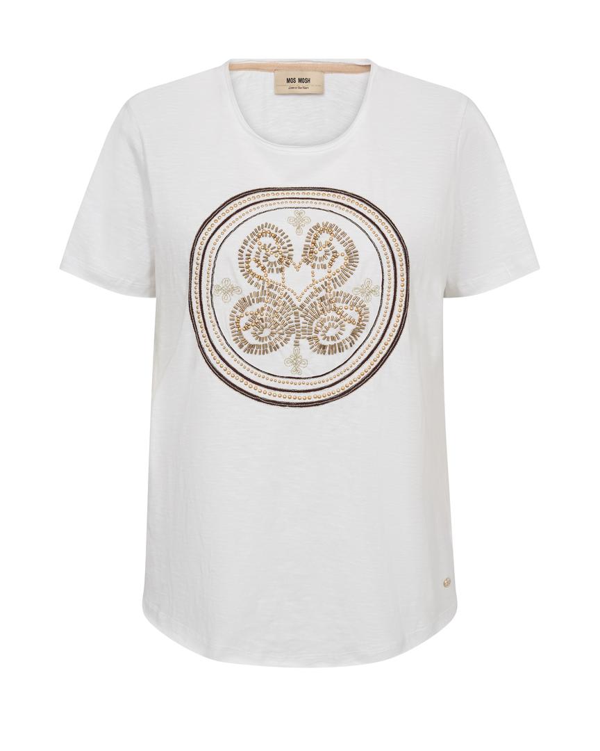 T-shirt van Mos Mosh met korte mouwen, ronde hals en borduursel voorzien van steentjes op de voorzijde. Materiaal: Katoen 100%