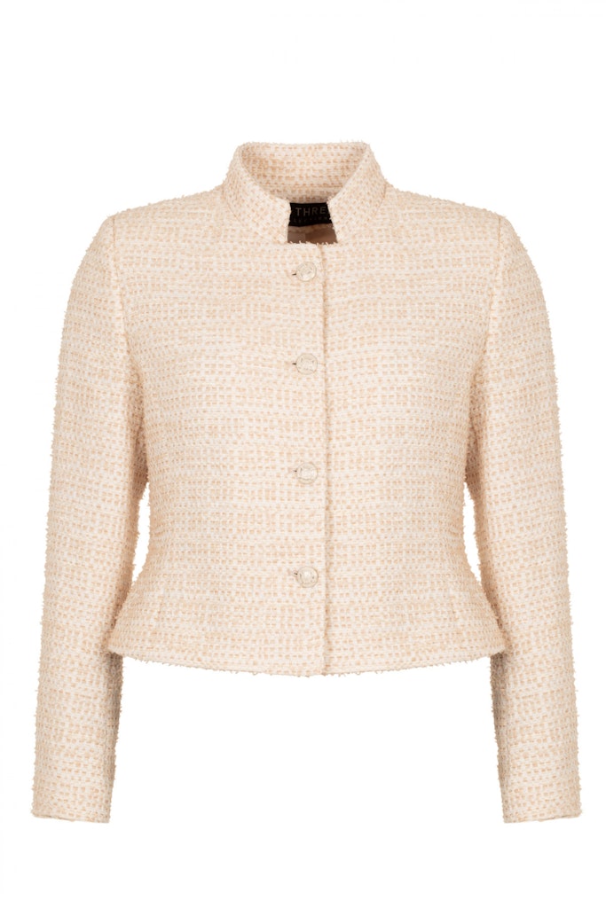 Blazer van B Three in een structuur dessin met lange mouwen, opstaande kraag en een knoopsluiting.
