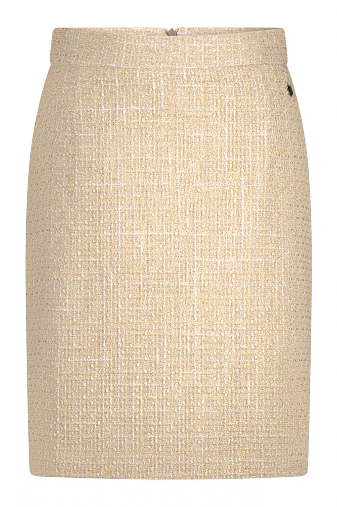 Korte rechte rok van Label Dot in een structuur dessin met een verborgen ritssluiting aan de achterzijde.