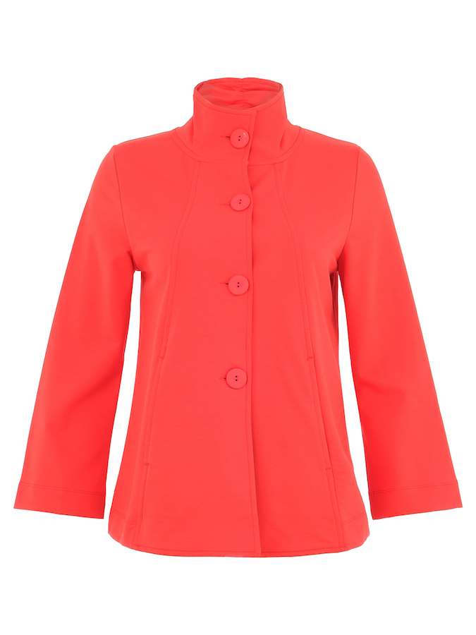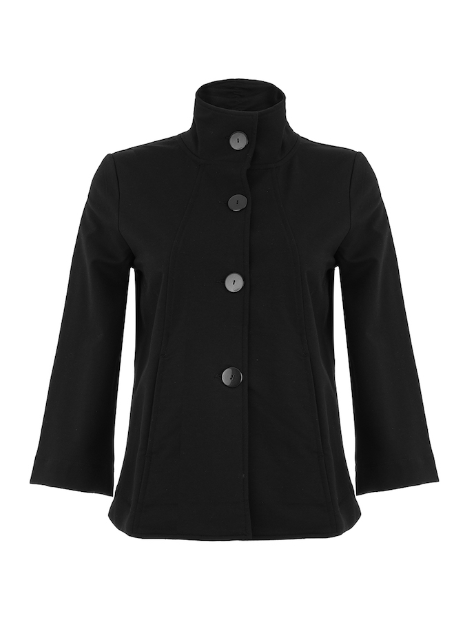 Blazer van Dolcezza met wijd uitlopende mouwen, opstaande kraag, knoopsluiting, steekzakken, rugplooi en een afgeronde onderzijde.