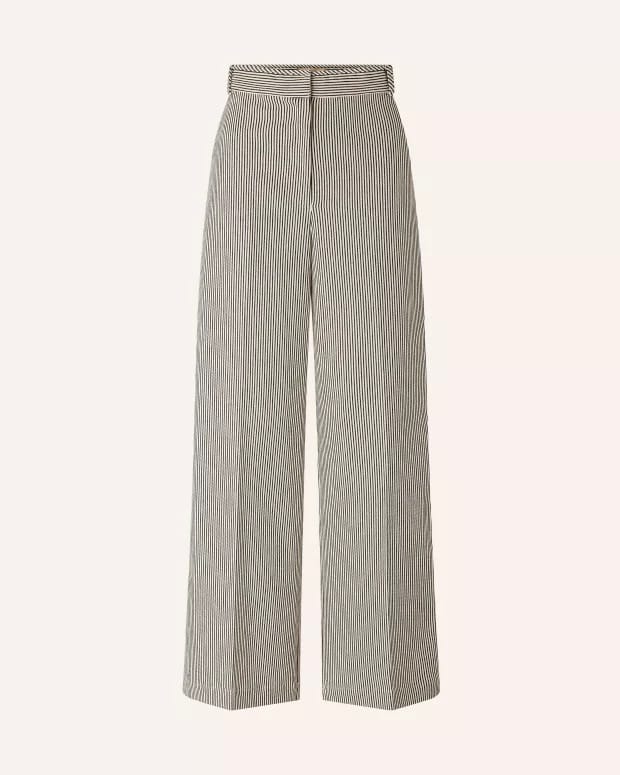 Gestreepte enkellange broek van Sessun met wijde pijpen, verborgen knoop- en ritssluiting, scherpe vouw aan de voorzijde en twee opgestikte achterzakken.