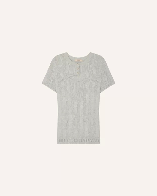 Trui van Sessun in een structuurdessin met korte mouwen, cut-out detail en een ronde hals voorzien van korte knoopsluiting.