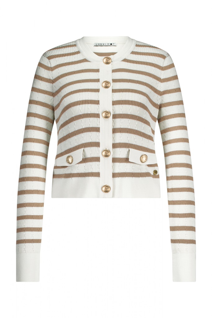 Gestreept vest van Label Dot in een structuur dessin met lange mouwen, ronde hals, knoopsluiting, decoratieve klepzakken en ribgebreide boorden.