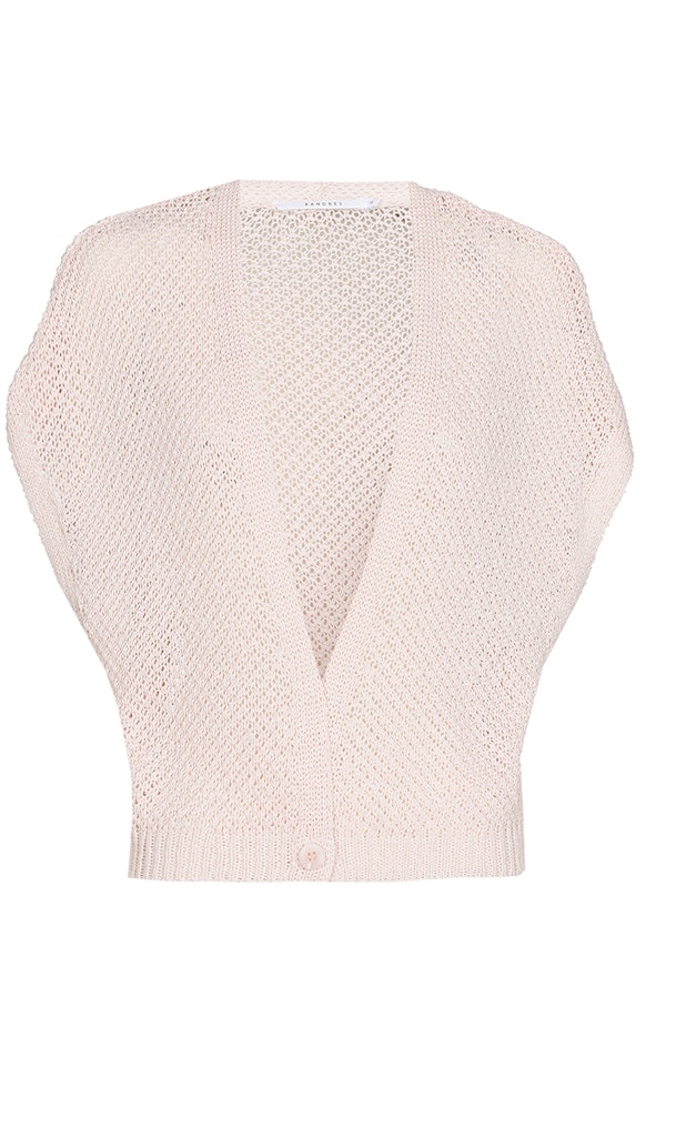 Gilet van Xandres in structuurbreisel met korte aangebreide mouwen, diepe V-hals en knoopsluiting.