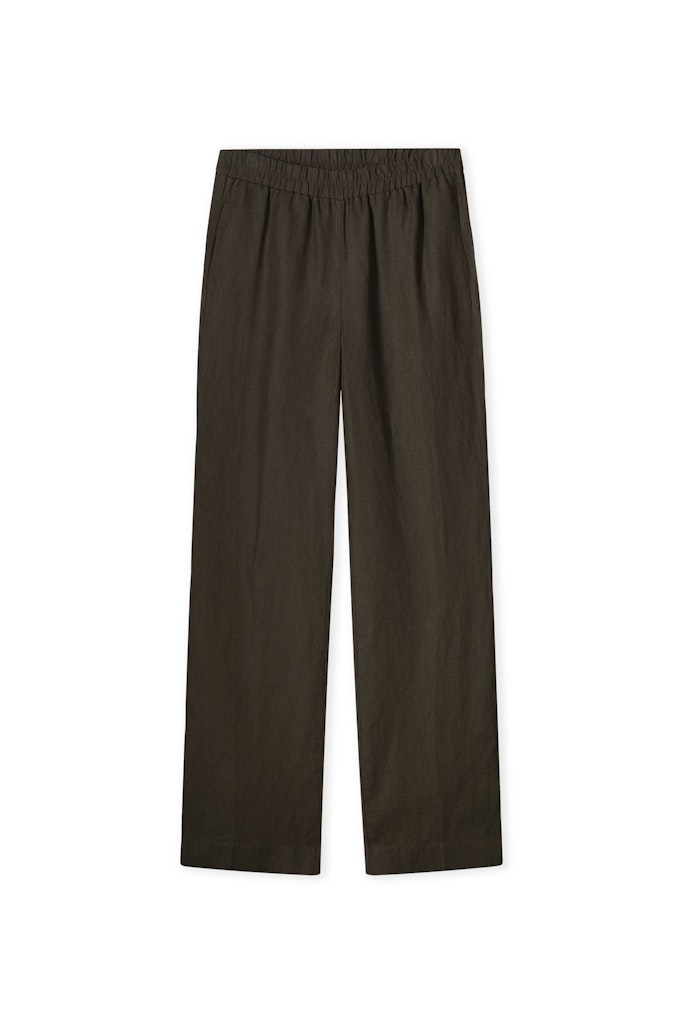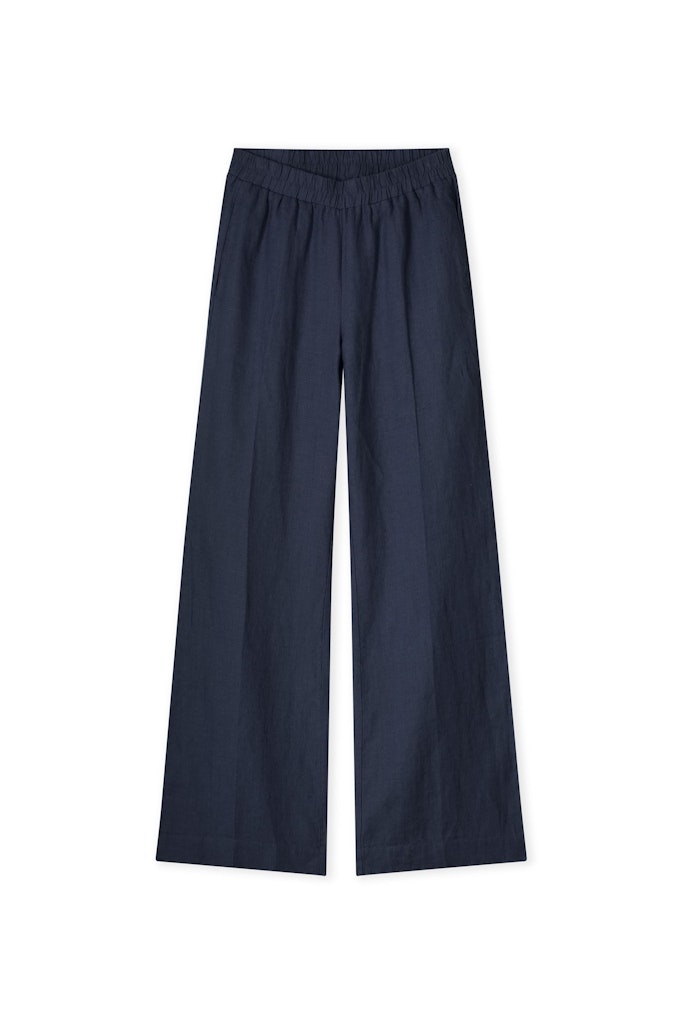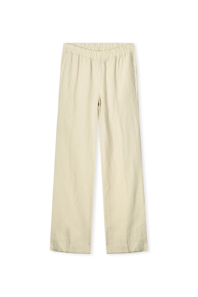 Linnen broek van Kyra met wijde pijpen, steekzakken en een elastische tailleband. Materiaal: Linnen 100%