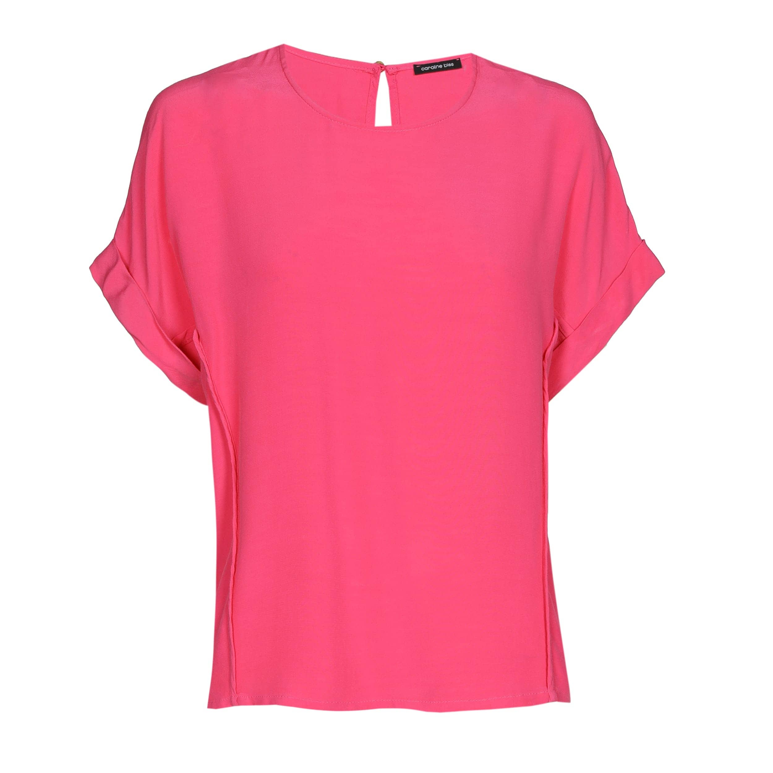 Blouse van Caroline Biss met korte aangeknipte mouwen voorzien van omslag, ronde hals en een keyhole met knoopsluiting aan de achterzijde.